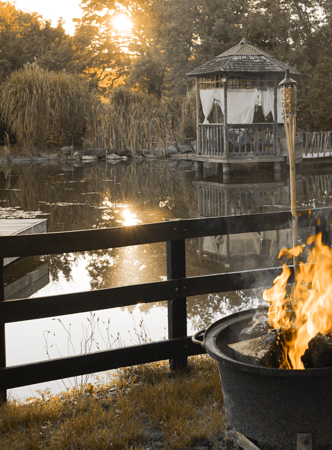 A tranquil, open-air setting by the water, ideal for ceremonies, contemplative practices, or mindful celebrations.